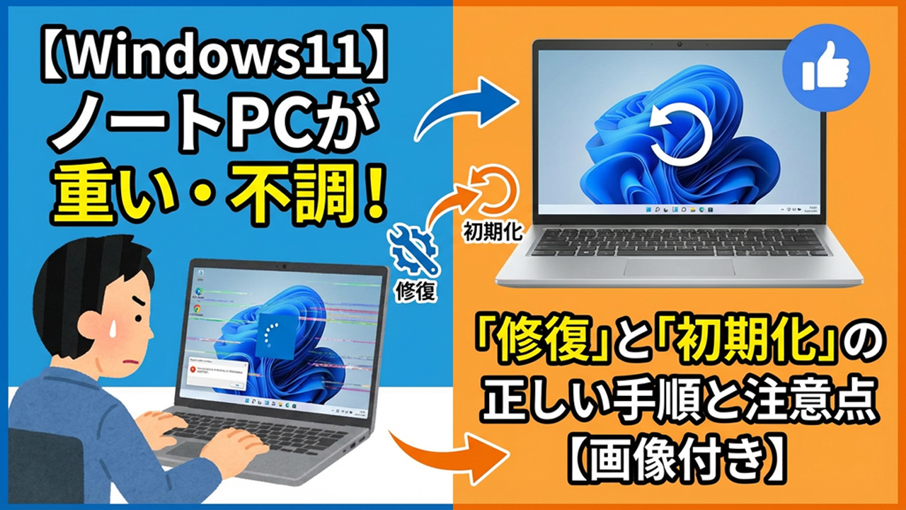 【Windows11】ノートPCが重い・不調!「修復」と「初期化」の正しい手順と注意点【画像付き】