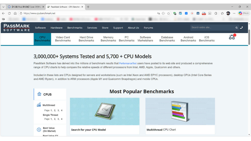 PassMarkは、世界中のユーザーが計測したベンチマーク(性能テスト)結果を集計しているサイトです。