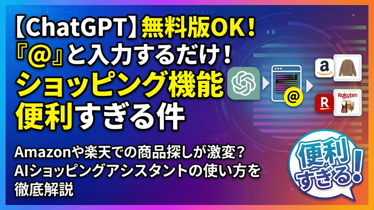 今回は、ChatGPTを使って効率よく、失敗しない買い物をするための「@ショッピング機能」の使い方を解説します。