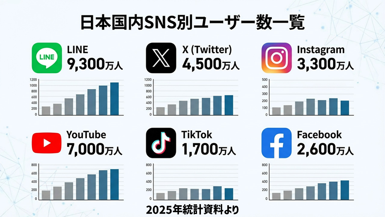日本国内SNS別ユーザー数一覧 2025年統計資料より