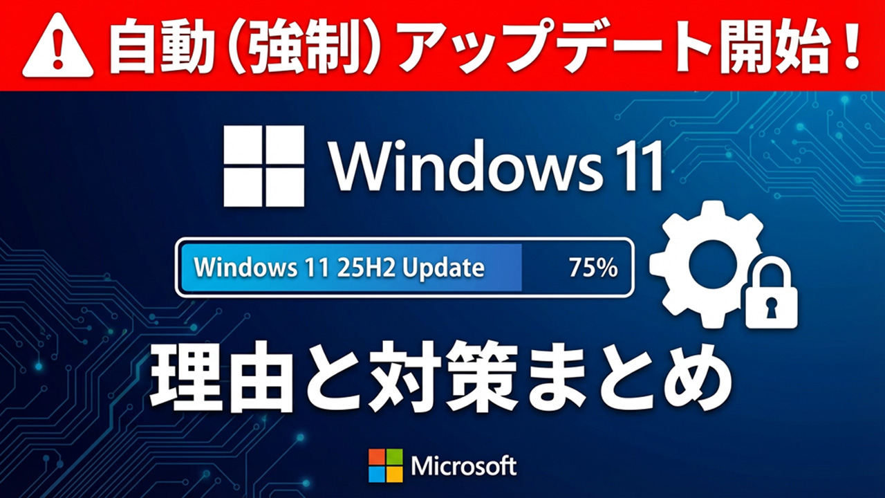強制アップデートが始まった最大の理由は、現在広く利用されているバージョン(24H2や23H2)のサポート終了日(2026年10月13日)が設定されているためです。サポートが終了したOSを使い続けると、最新のセキュリティ更新が受けられなくなり、悪意のある攻撃に対する脆弱性が急激に高まります。マイクロソフトはユーザーの安全を確保するため、早めの移行を促しています。
